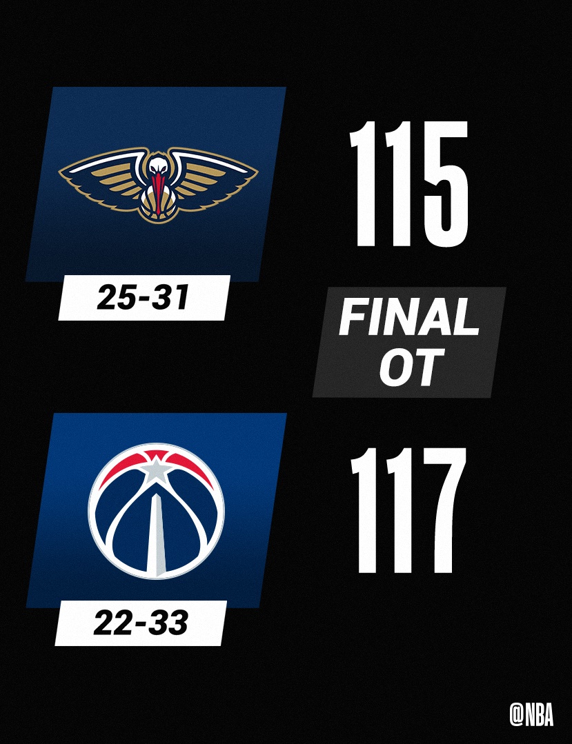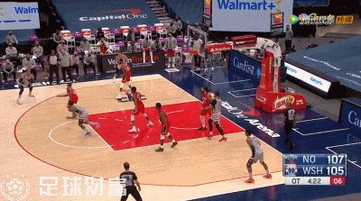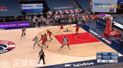 NBA常规赛今上午结束的一场比赛,奇才117-115险胜鹈鹕。