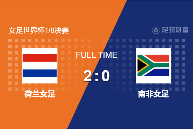 最终全场比赛结束,荷兰女足2-0击败南非女足晋级8强。