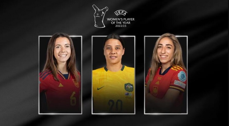 欧足联官方公布2022-23赛季女足最佳球员的三人候选,西班牙女足的邦马蒂、卡蒙娜以及澳大利亚女足的克尔入围!