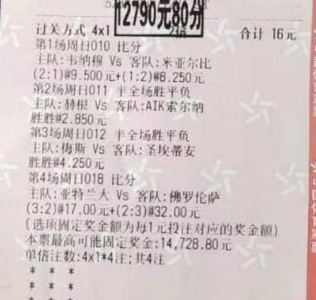 近日,一位彩民朋友向我们分享神单,他选择了四场6月2日晚间的比赛混合过关,完美命中!投资16元,揽获12790元大奖,一起来看看他的思路吧。