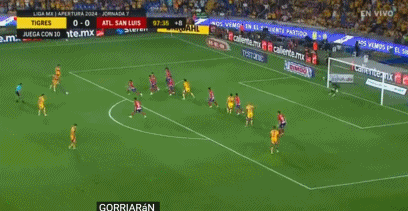 第34分钟,墨西哥老虎中场布鲁内塔拼抢时蹬踏犯规,被红牌罚下!球队10人迎战!