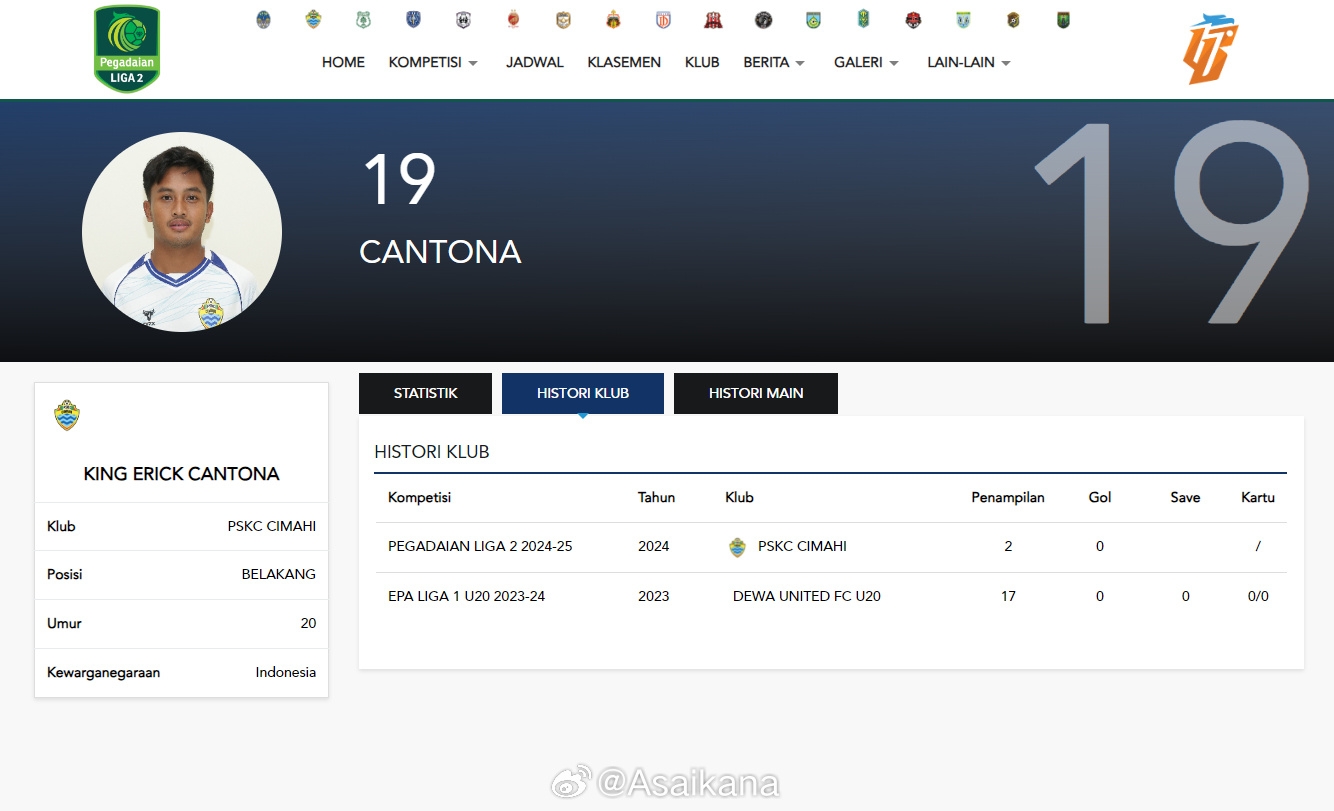 😅印尼乙级联赛球员名字:国王-埃里克-坎通纳