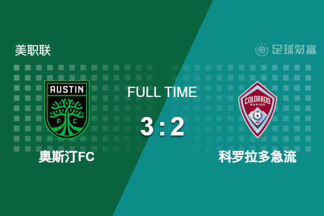 最终全场比赛结束,奥斯汀主场3-2击败科罗拉多急流,送对手4连败。
