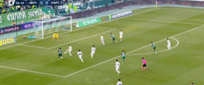 第76分钟,全北外围远射再次制造威胁,被江原门将李光洲飞身托出底线!