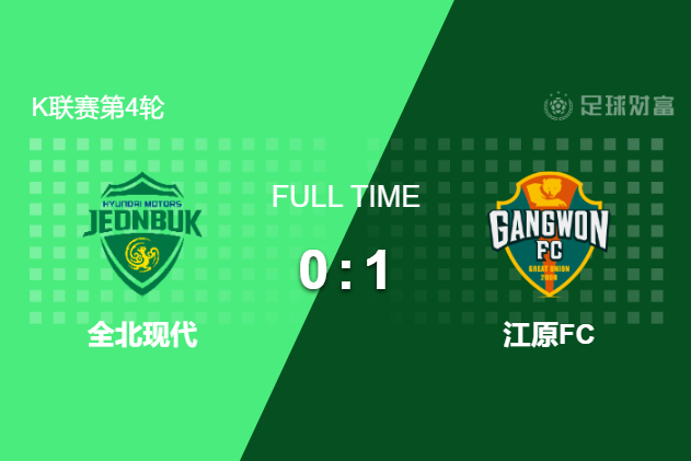 最终全场比赛结束,江原全场3脚射门仅1次射正,就完成了绝杀进球,1-0力克全北现代汽车。全北全场6次射门均没有打正,遭遇各项赛事3连败!