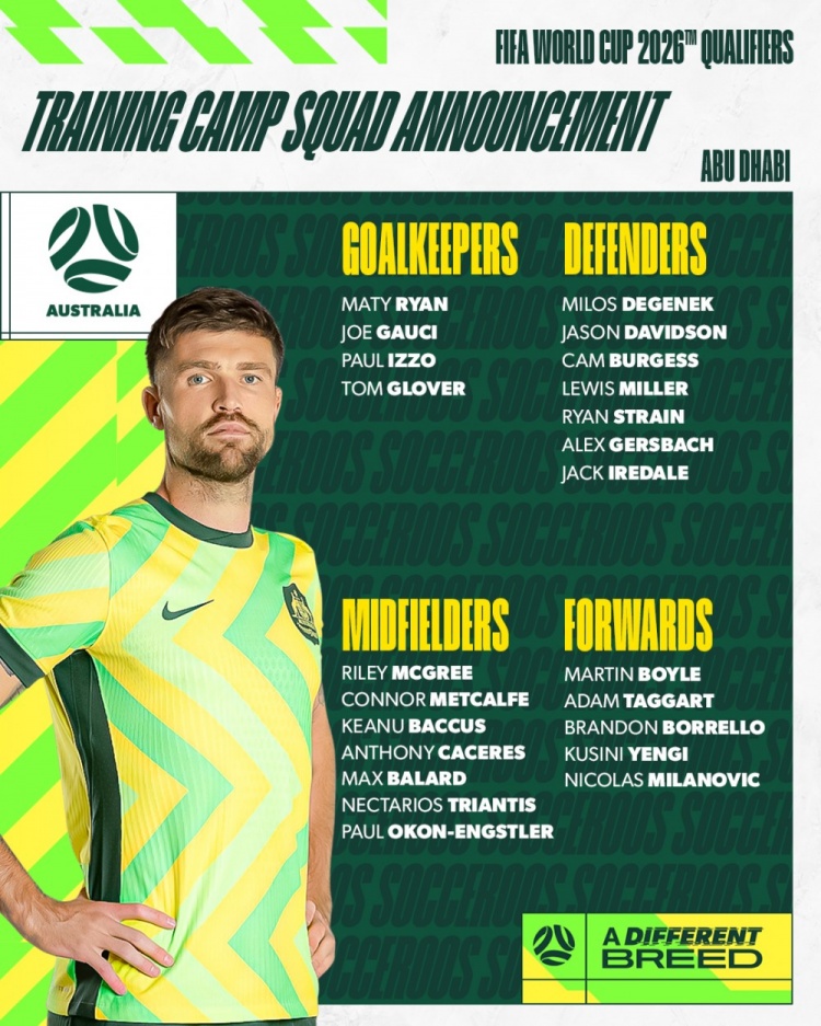 🆚日本&沙特!澳大利亚名单:马修-瑞安领衔,古德温缺席