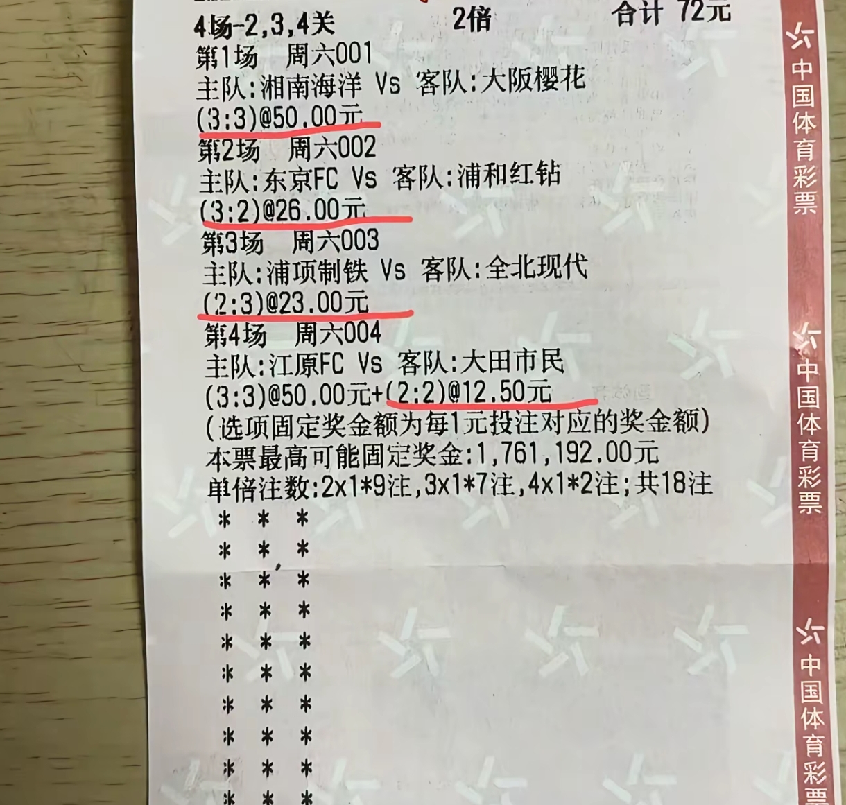 神单💥近日四场比分全命中,彩民擒获百万大奖