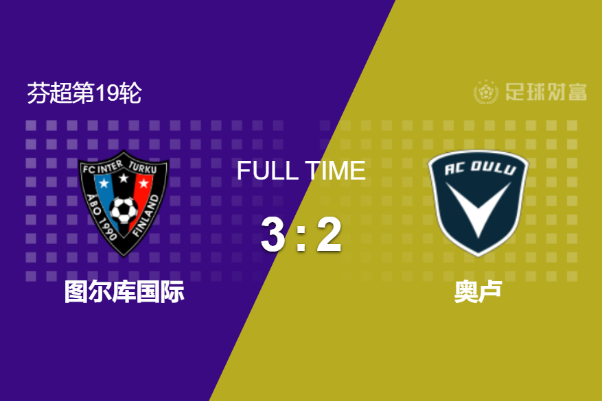 最终全场比赛结束,图尔库国际3-2击败奥卢。