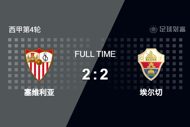 最终全场比赛结束,塞维利亚主场2-2战平埃尔切。