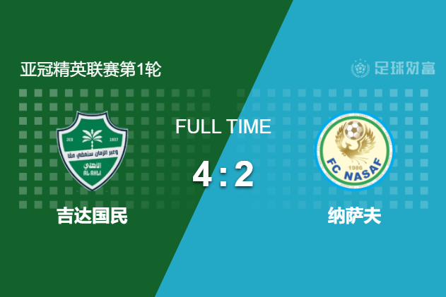 最终全场比赛结束,吉达国民主场4-2逆转战胜纳萨夫。