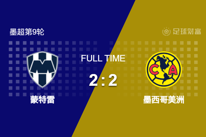 最终全场比赛结束,蒙特雷主场2-2战平美洲。