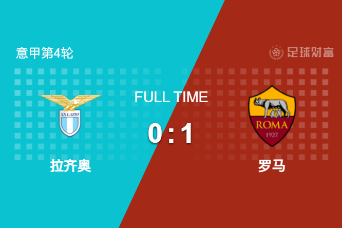 最终全场比赛结束,十人拉齐奥主场0-1不敌罗马。