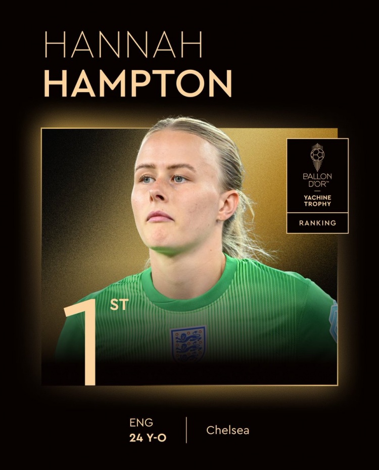 北京时间9月22日,效力切尔西女足的英格兰门将汉普顿获得2025年雅辛奖,太阳报称赞了她的励志生涯。