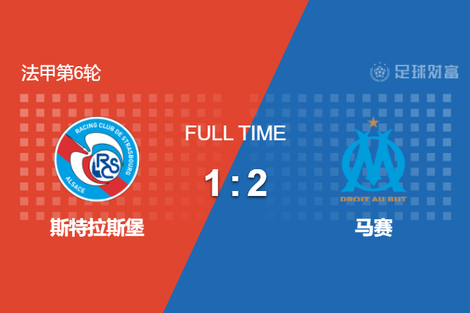 最终全场比赛结束,马赛客场2-1逆转斯特拉斯堡,登顶法甲积分榜。