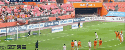 第45+8分钟,南泰熙任意球直接破门,10人济州2-2扳平比分。