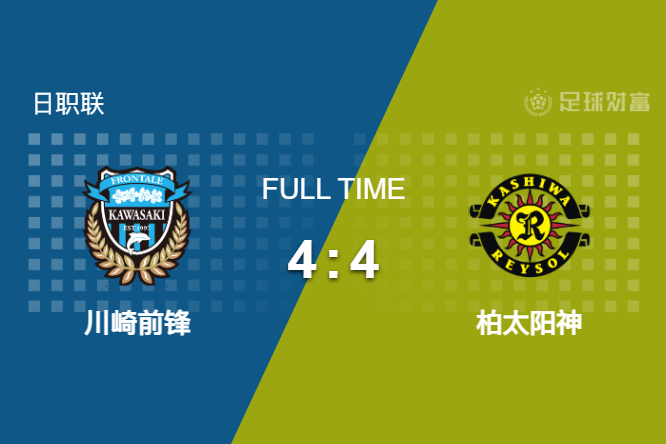 最终全场比赛结束,川崎前锋主场4-4战平柏太阳神。