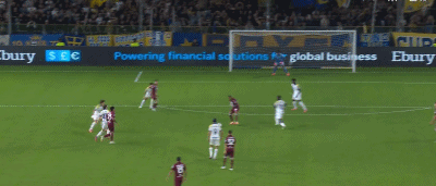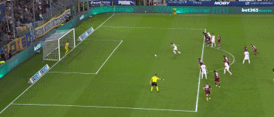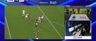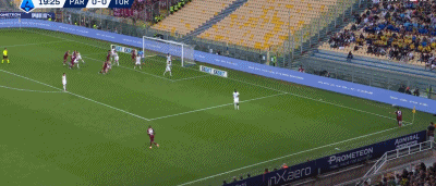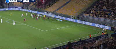 第35分钟,都灵球员禁区内防守任意球时手球送点,马特奥-佩莱格里诺操刀命中,帕尔马1-0。