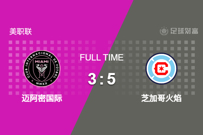 最终全场比赛结束,迈阿密国际主场3-5不敌芝加哥火焰。