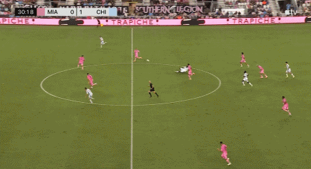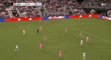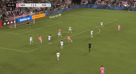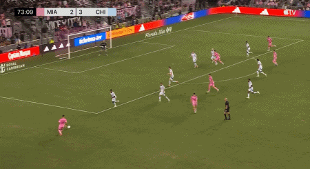 第74分钟,阿尔巴左侧低平球传中,苏亚雷斯停球兜射,迈阿密3-3扳平