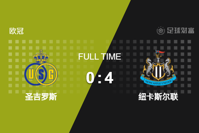 最终全场比赛结束,纽卡斯尔联客场4-0圣吉罗斯联合。