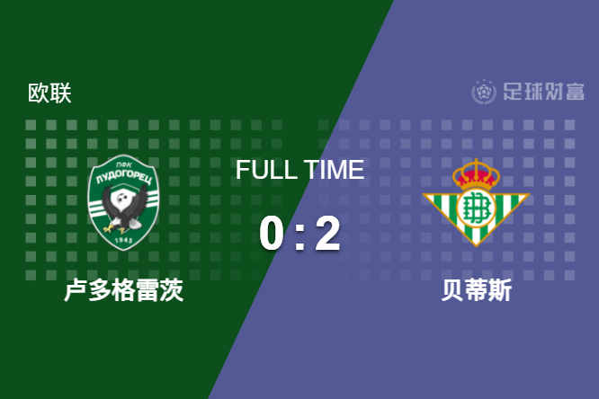 最终全场比赛结束,皇家贝蒂斯客场2-0卢多戈雷茨。