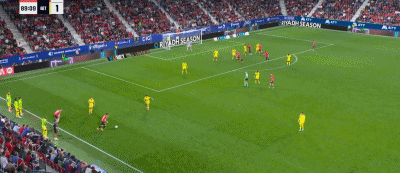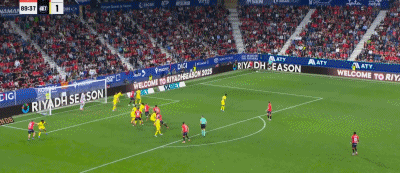 第90分钟,鲁文-加西亚开出右侧角球,卡泰纳前点甩头攻门得手,奥萨苏纳2-1。
