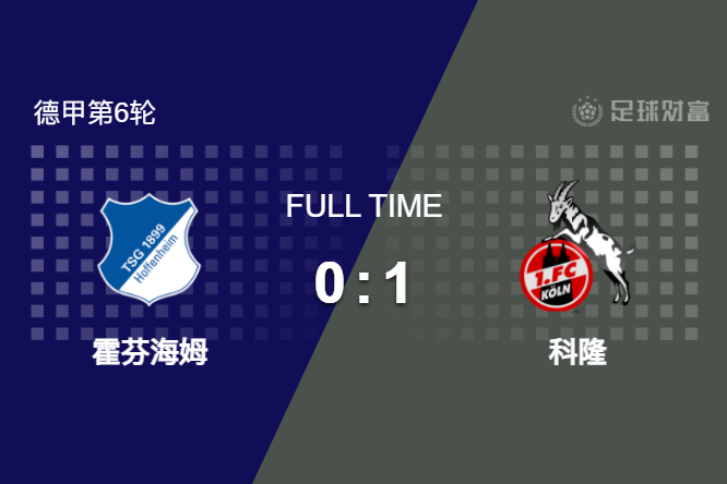 最终全场比赛结束,霍芬海姆主场0-1不敌科隆。