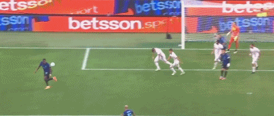 第38分钟,迪马尔科左侧前插传中,博尼头球入网,国米2-0。