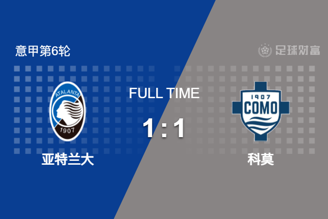 最终全场比赛结束,亚特兰大主场1-1战平科莫。