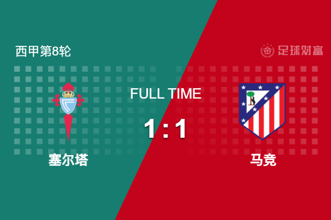 最终全场比赛结束,塞尔塔主场1-1战平十人马竞。