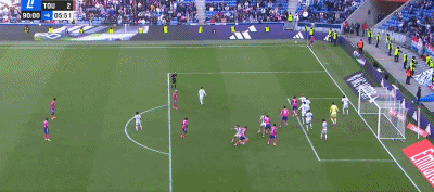第90+6分钟,替补出场双响!埃莫松角球机会头球绝杀,图卢兹2-1。