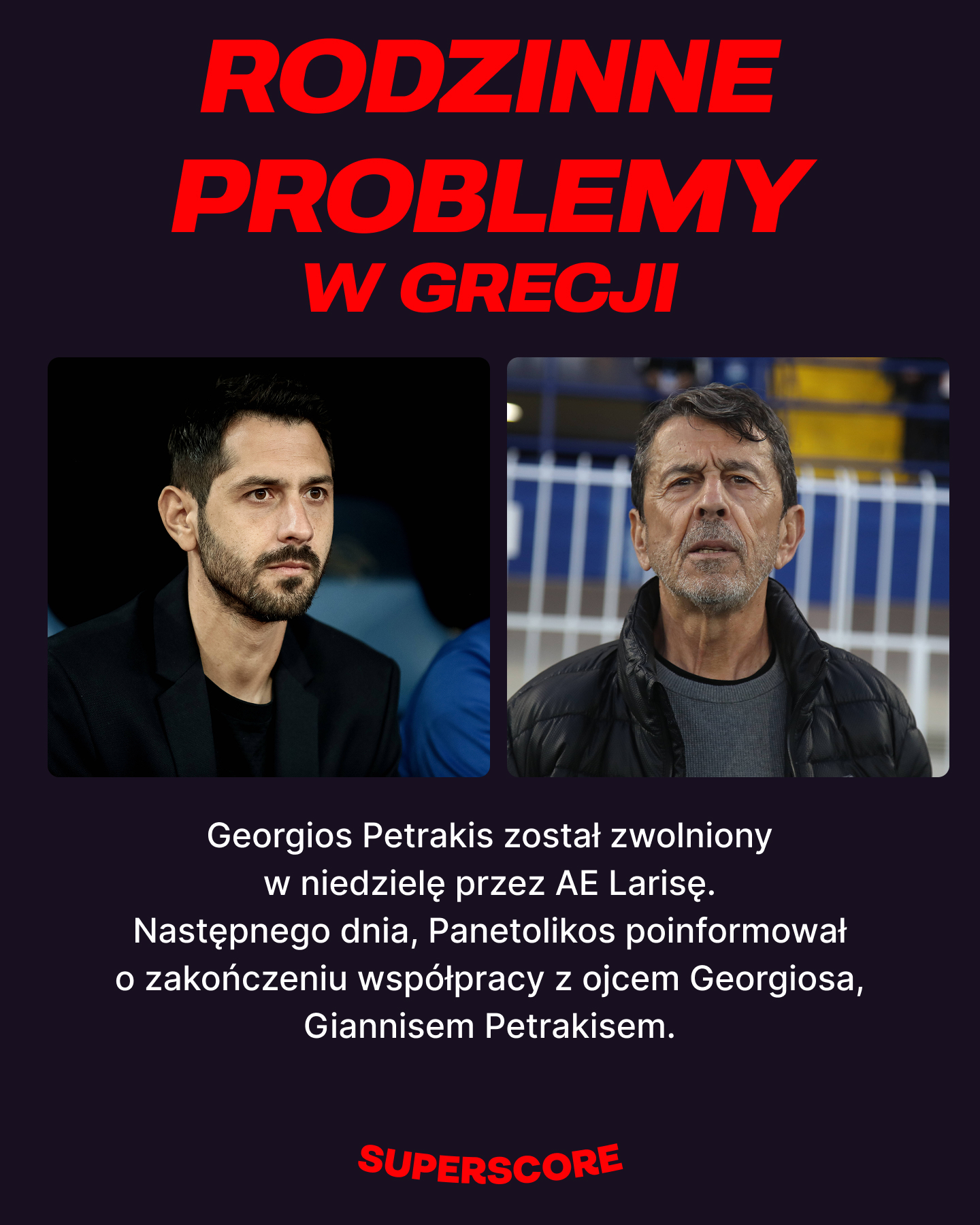 据国外媒体《Superscore Polska》报道,希腊超级联赛出现罕见一幕,担任主教练的父亲和儿子在两天内接连被解雇。