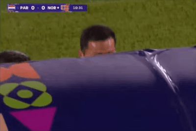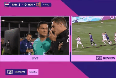 第47分钟,巴拉圭开出前场左侧任意球,巴尔武埃纳禁区内包抄破网,但主裁判经过var确认他处于越位位置,进球被吹!!