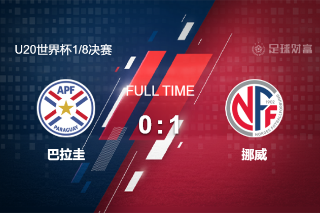 最终全场比赛结束,挪威U20绝杀击败巴拉圭U20,闯入八强。