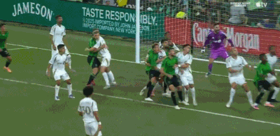 第18分钟,洛杉矶获得前场任意球,蒂尔曼左脚弧线球攻门稍稍高出!