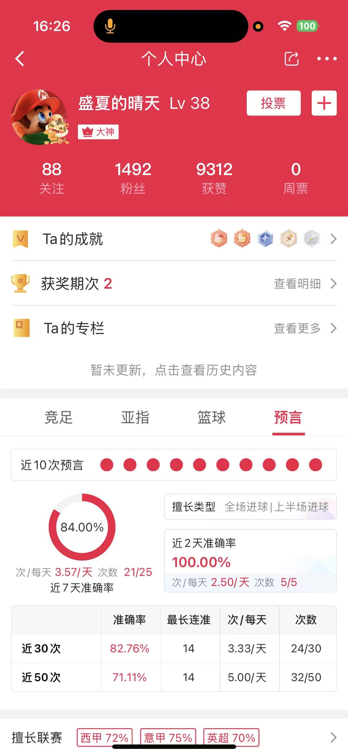 当前连准:14连准近期状态:专注世欧预,状态火热