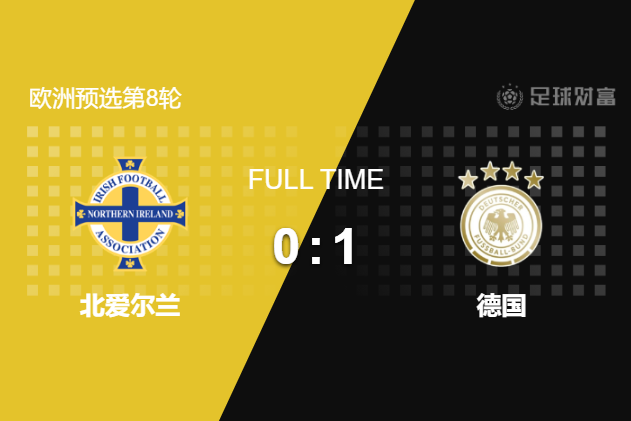 最终全场比赛结束,德国队客场1-0小胜北爱尔兰。