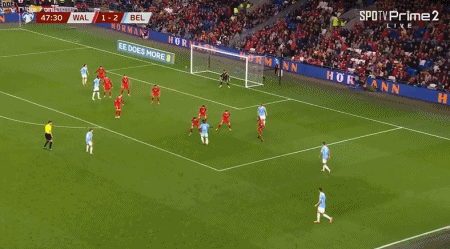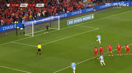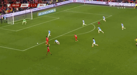 第76分钟,乔丹·詹姆斯禁区内故意手球,比利时再次获得点球,德布劳内主罚命中梅开二度,3-1!