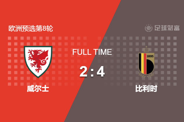 最终全场比赛结束,比利时4-2击败威尔士,登顶小组头名。