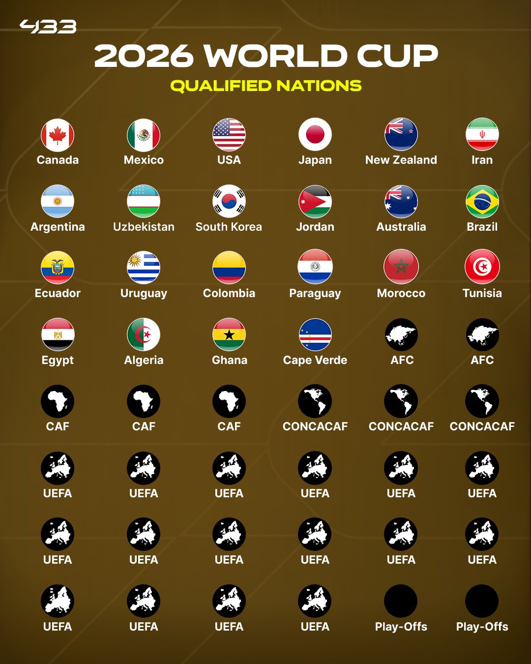 非洲区:摩洛哥、突尼斯、埃及、阿尔及利亚、加纳、佛得角(历史首次)