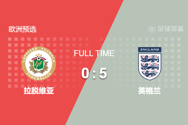 最终全场比赛结束,英格兰客场5-0大胜拉脱维亚,提前2轮锁定世界杯正赛席位!