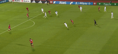 第86分钟,鲍恩反击中直塞,埃泽内切右脚兜射打进右下角,5-0!!