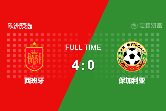 最终全场比赛结束,西班牙主场4-0大胜保加利亚,豪取世预赛4连胜。