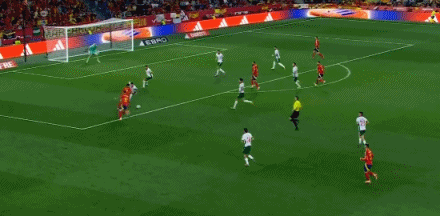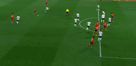 第35分钟,西班牙取得领先!佩德里禁区前起球,勒诺尔芒后点头球摆渡,梅里诺中路头球接力破网,1-0!