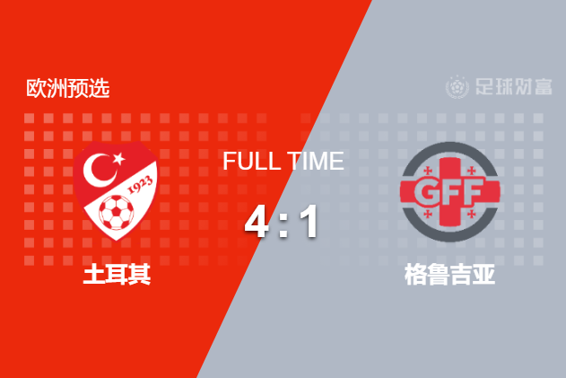 最终全场比赛结束,土耳其主场4-1大胜格鲁吉亚。