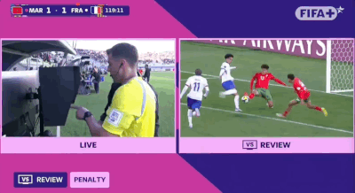 第117分钟,摩洛哥球员疑似封堵射门时手球,主裁判通过var复查,最终没有判罚点球!