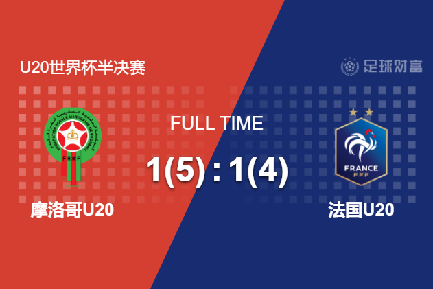 点球大战中,法国队贝尤库和恩盖桑先后罚丢,摩洛哥6罚5中,最终摩洛哥点球5-4淘汰法国队,队史首次晋级U20世界杯决赛。