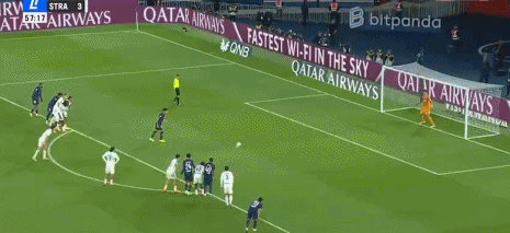 第27分钟,斯特拉斯堡扳平!盖拉·杜埃反击中45度起球,后点的帕尼切利高高跃起头球破网,1-1!!