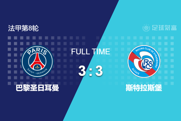 最终全场比赛结束,巴黎主场3-3战平斯特拉斯堡。