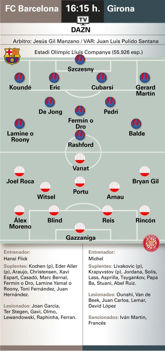 北京时间10月18日晚22:15,西甲第9轮的一场较量,巴萨将在主场对阵赫罗纳。赛前,西班牙媒体《世界体育报》预测双方首发,莱万、费兰·托雷斯、拉菲尼亚因伤缺阵,拉什福德预计出任单箭头,巴尔德顶上锋线。